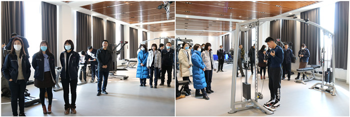 在一樓健身房內,教練向大家逐一介紹了各類常用健身器材及使用方法,并就員工提出的健身運動問題進行了一一解答。通過教練的標準示范,大家積極參與、親身體檢,相互交流健身鍛煉心得。